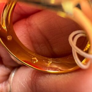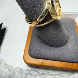 Stylish Kate Spade ring with a gold tone signature spade. Ideal for a chic look.