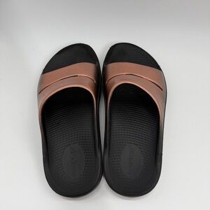 Oofos Ooahh Luxe Rose Gold Slides