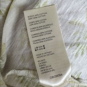 100% cotton with a pretty floral pattern; very flowy, lightweight, and soft!