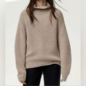 Aritzia Wilfred Montpellier Turtleneck Sweater 100% Merino Wool Medium Taupe