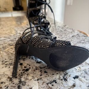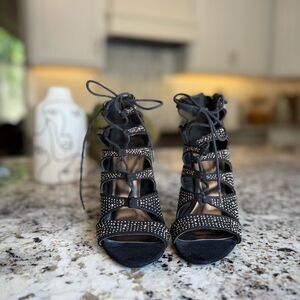 Chic black heels with studded design. Lace-up style for a secure fit. Perfect for a night out.