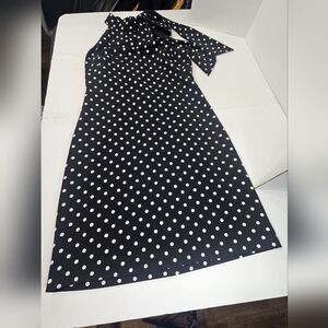 Vince Camuto Black and White Polka Dot Halter Midi Dress