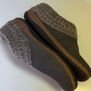Clarks 9M Knitted Collar Clogs Suede Fur-Lined Hard-Bottom Slippers Gray EUC