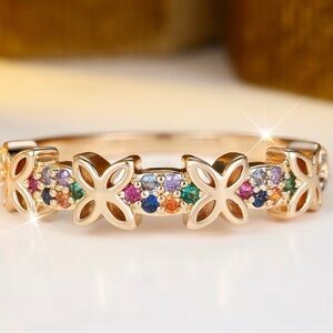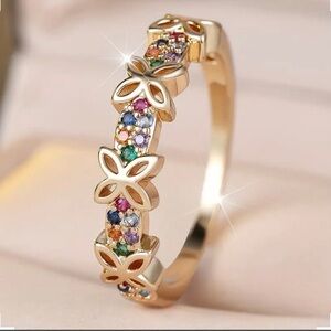 This exquisite gold ring features a stunning butterfly design adorned with multicolor gemstones. Perfect for adding a touch of elegance to any outfit.