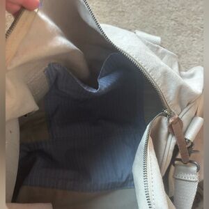 Limited Edition Wren & Glory hand painted rainbow motif “We all need love”. Canvas duffle style bag with adjustable shoulder strap and secure handles. Lots of pockets.