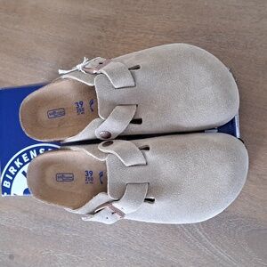 Birkenstock Boston Soft Footbed Clogs - Color: Suede Taupe - Size: Women 8