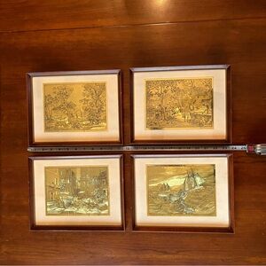 Set of 4 Vintage Framed Gold Foil Etching Art Prints by Lionel Barrymore