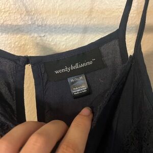 Wendy Bellissimo Maternity Navy Blue Lace Accent Sleeveless Tunic Blouse M