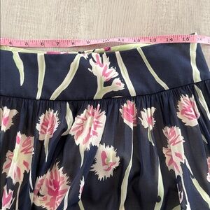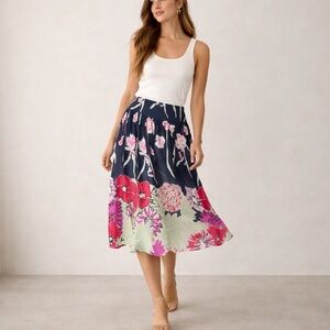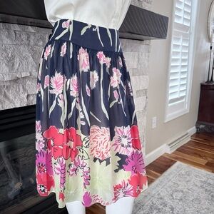 St. John Collection Navy & Pink Floral Silk A-Line Skirt | Size 10