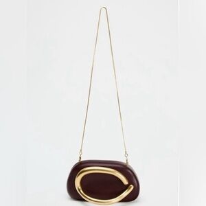 ZARA GOLD CLOSURE BOX CLUTCH IN BURGUNDY