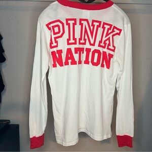 PINK Long Sleeve Ringer Tee White and Red