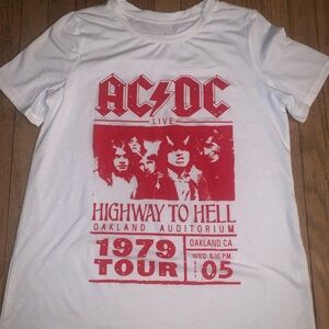 AC/DC T-shirt. Adult large size. As you can tell from the last picture of the back of the shirt, the material is a little see through and can see the words from the front. In very good condition !
