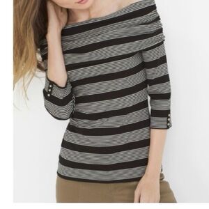 WHBM Black & White Stripe Off-The-Shoulder Ruched Sleeve Top L