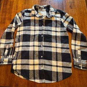 Thread & Supply Women’s Relaxed Fit Black & Cream Flannel Shirt w/ Side Pockets