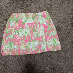 Lilly Pulitzer Girls Skort Size 12 Pink Green Tropical Print
