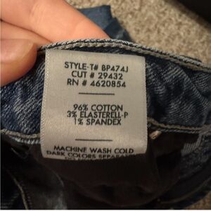 Stylish wide leg jeans with distressed bottom. Dark blue denim. Have a great amount of stretch - super comfy. Bought on DePop but unfortunately are too small for me. Originally seller said only worn 5 times (you can see original description in the photo). I never wore them except to try them on.