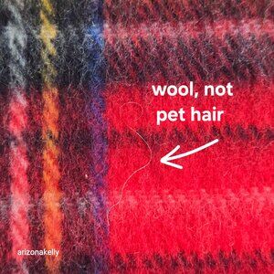 There are no tags on this large thick scarf. It's either got some cashmere in the mix or it's a very high-quality wool because it's VERY soft. Perfect condition-no flaws. No pet hair. No odor.