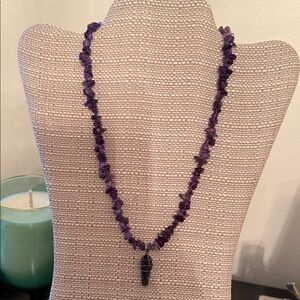 amethyst chip necklace with a crystal point pendant.