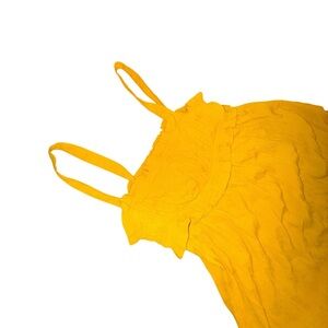 The Orange Grooves Dress is a sunflower yellow maxi dress with thick straps and an empire waist.