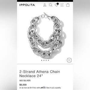 ippolita two strand, Athena chain necklace sterling silver with gold vermeil on top of Sterling Chunky gold links create a statement piece. Perfect for elevating any look. This is currently on the Ippolito website for $6000 in sterling silver without the gold for meal on top. we 321.6 g.