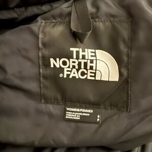 Small North Face Puffer. I did have to patch a few holes from a camp fire (right arm and inner collar) but the patches aren’t noticeable unless you’re looking. I used Gearaid Tenacious Tape. Other than that, no holes, rips, stains or tears! Warm & cozy!