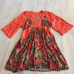 Free People Tallula Cherry Combo Dress Size Large Mini Boho