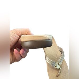 Vionic Women's Tide Aloe Toe-Post Sandals Flip Flop gold Beige size (11”) missing size tag but they measure 11” heel to toe vionic size chart specifies that is a size 12.