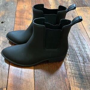 Sleek Jeffrey Campbell Havana Last Chelsea rain boots in women’s size 11 – classic black style, perfect for rainy days and everyday wear.