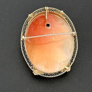 Vintage 14K Yellow Gold Large Hand Carved Shell Cameo Diamond Brooch Pin Pendant