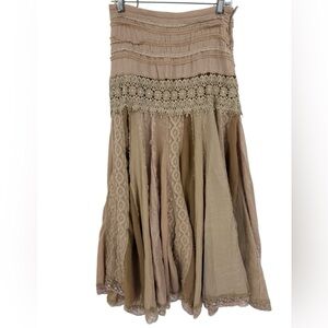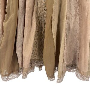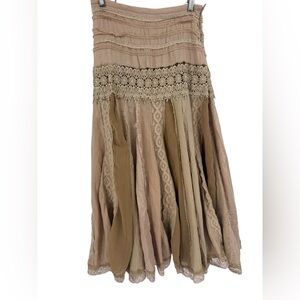 Vintage 90s Brown Mixed Media Lace Gypsy Skirt Whimsigoth Witchy Boho Maxi