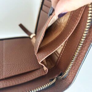 Slim profile and zip-around style with folding feature make it easy to access your cards and cash.