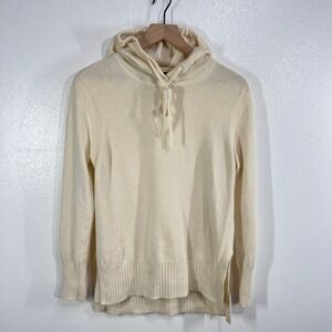 Banana Republic Italian Merino Blend Hoodie Sweater Cream Size M Ribbed Cuffs