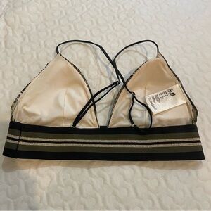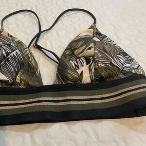 H&M Bikini Swim Top Women’s Size 8 Palm Green Leaf Print Band Cross-back Summer