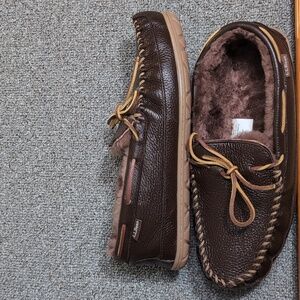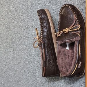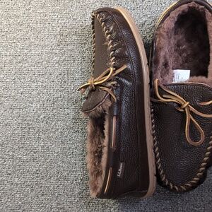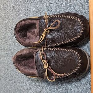 L.L. Bean Wicked Good Moccasins Moosehide Slipper Chocolate Brown Size 11.0
