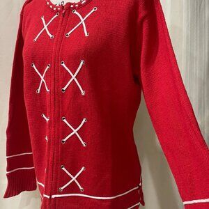 Red and white cardigan Sweater