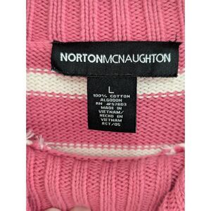 Vintage, Soft, cozy, and effortlessly romantic — this Norton McNaughton pink striped sweater is the perfect coquette staple for your February layering. Crafted from 100% cotton, it features a chic mock neck, ribbed trims, and elevated button shoulder detailing for a vintage-inspired touch.