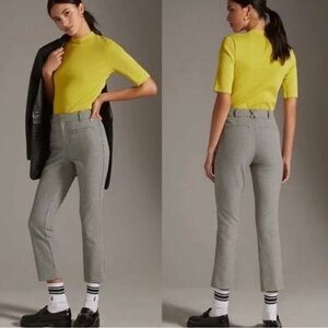 Maeve by Anthropologie Essential Slim Kick Flare Pant in black and white houndstooth print. Size 10. Cropped. Highrise. Zipper fly with hook closures. Pockets. Belt loops. Retailed for $128. Pre-owned, excellent used condition.