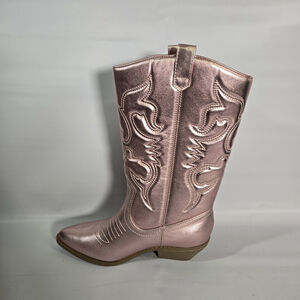 Soda Metallic Pink Western Cowboy Boots Embroidered 9 NIB Rodeo Cowgirl Festival