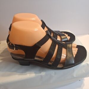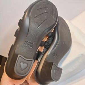 SAS Tripad Slingback Black Leather Women's Sandals with Heart Detail. Size 7 M
