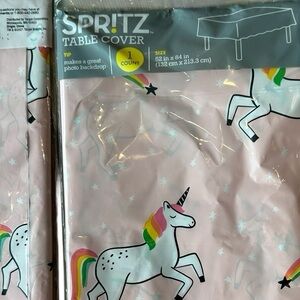 Brand new unopened party supplies - two tablecloths, three garlands, three packages of six glitter necklace favors ea for a total of 18 make this a great and easy deal for your next whimsical party.