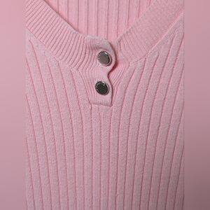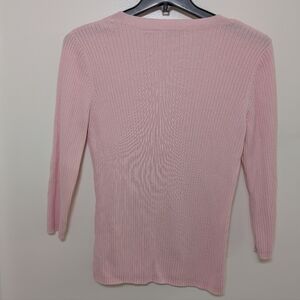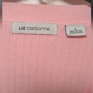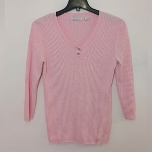 Liz Claiborne Pink Ribbed Cotton Henley Sweater L Soft Girl Romantic Coquette