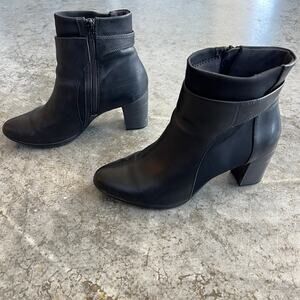 Clarks Black Leather Heeled Ankle Boots Comfortable Booties Size 9