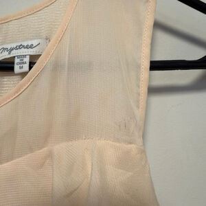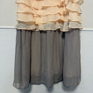 Mystree Women’s Beige Gray Ruffle Sleeveless Dress SZ M Chiffon stains as shown