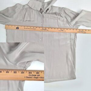 Louis Feraud Vintage Silk Tie Neck Blouse Gray Long Sleeve Romantic SZ 38/6