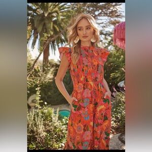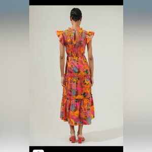 SugarLips Idalia Floral Smocked Midi Dress Orange Mutli