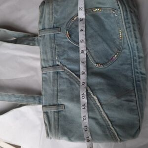 Denim jeans shoulder purse with crystal on heart pocket hand placed crystals like new condition