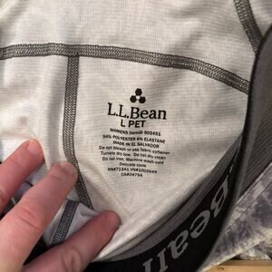 L.L.Bean women’s midweight base layer leggings in a gray and white print. Designed to sit close to the body for warmth and comfort, these thermals are moisture-wicking with stretch for easy movement. Perfect for layering under ski pants, hiking, camping, or cold-weather wear.