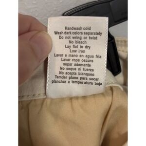 They feature a classic mid-to-high rise fit with a traditional five-pocket design and a secure zip-fly with a branded button closure. Unique design details include distressed raw hems and side slits at the leg openings, adding a modern, lived-in edge to the sophisticated color. Whether paired with a linen shirt for a coastal look or a simple tee for everyday errands, these size Large shorts are a high-quality staple for warm-weather styling.