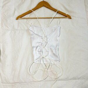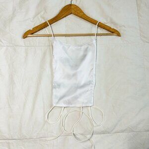 NWOT SHEIN White Satin Lace-Up Open Back Cami Top Women’s Size Small