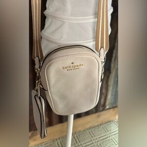 NWOT-Kate Spade New York Cream Crossbody Bag with Striped Strap & Mini Pouch